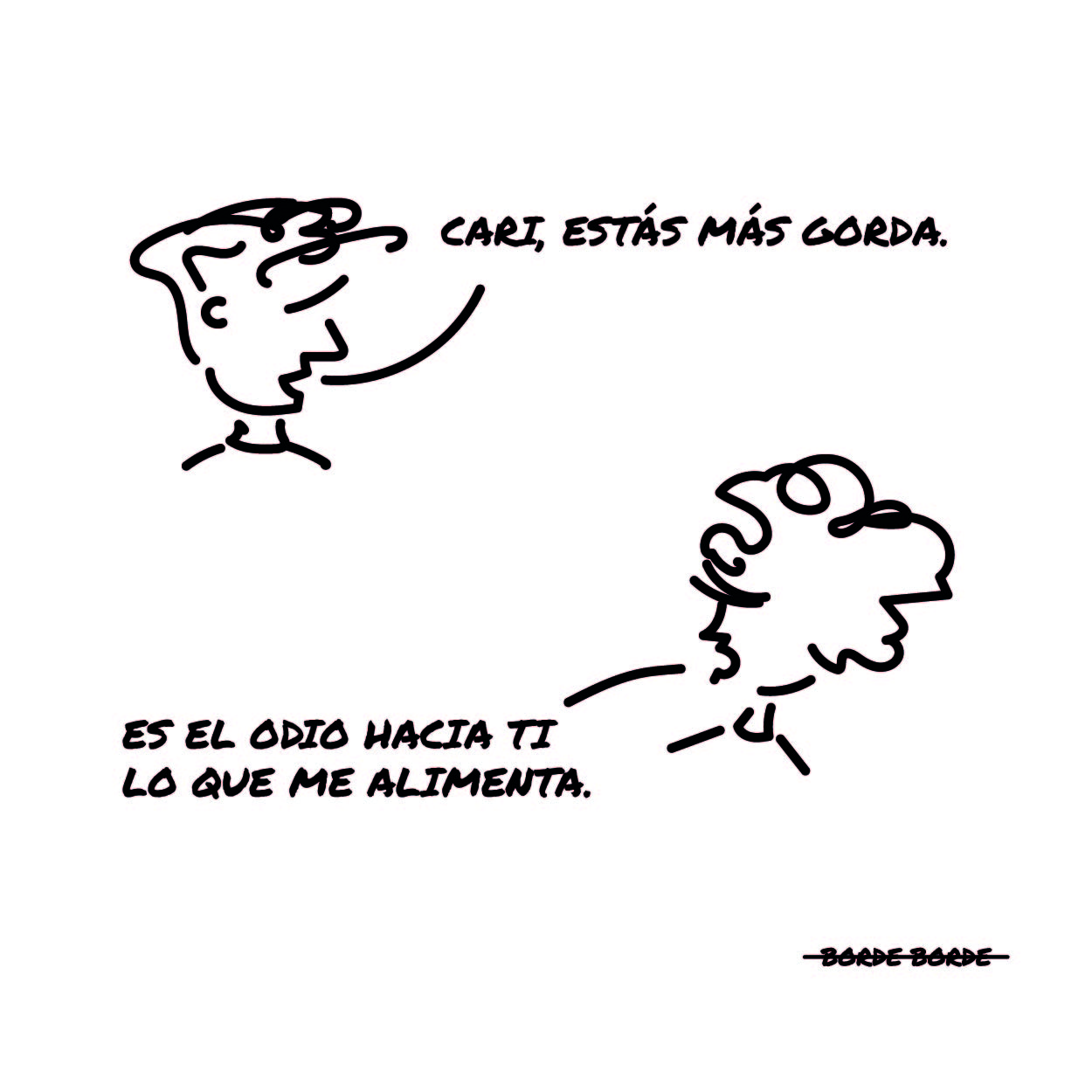 En 2017, harta de que la gente soltara lo que le diera la gana sin tener a los demás en cuenta, me di cuenta que yo tenía una réplica para ellos. Por esto, creé BORDE BORDE, una cuenta de Instagram para responder a todos esos comentarios gratuitos que nadie ha pedido.